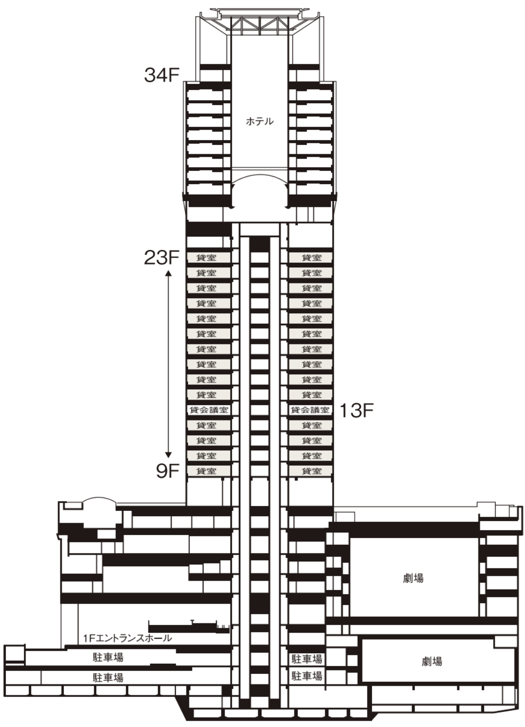 | 高さ | ― | 階数 | 地下3階 地上34階 | ||