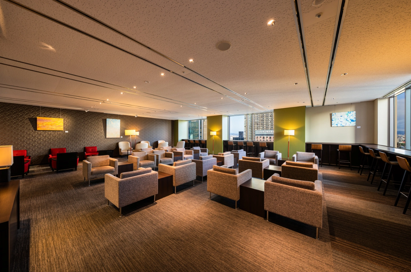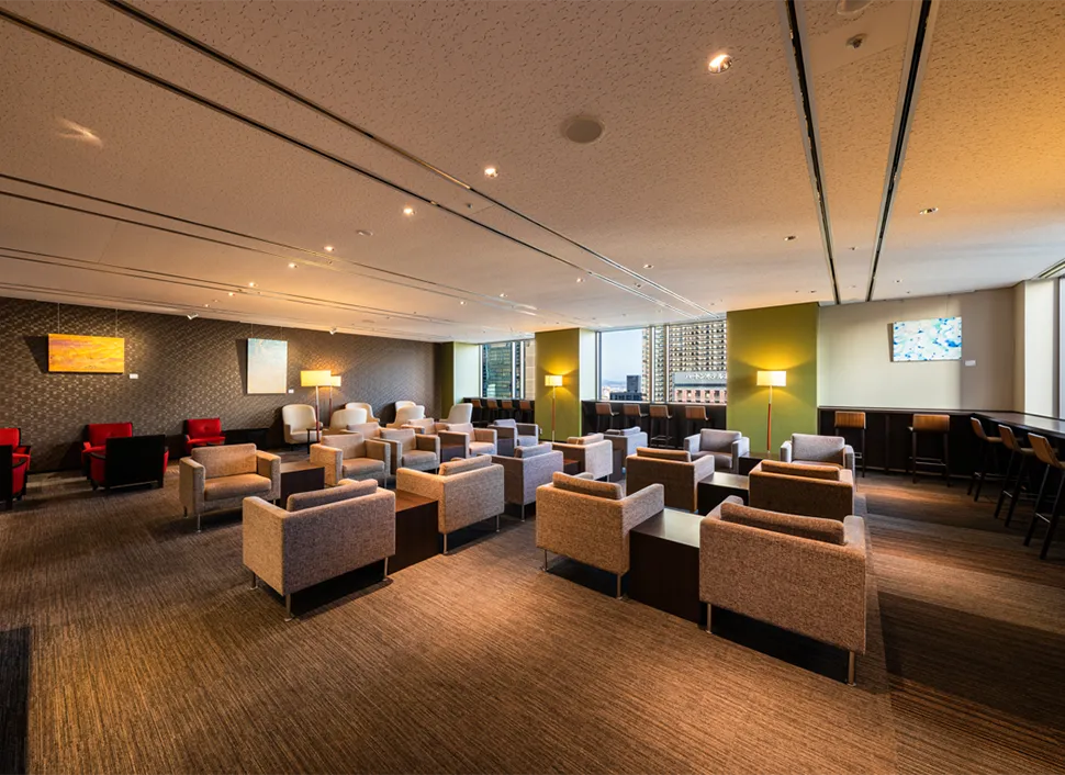アプローズタワー13階の「Applause Tower Lounge」は、入居ワーカーのリフレッシュ、ワークスペースとしてご利用いただけます。