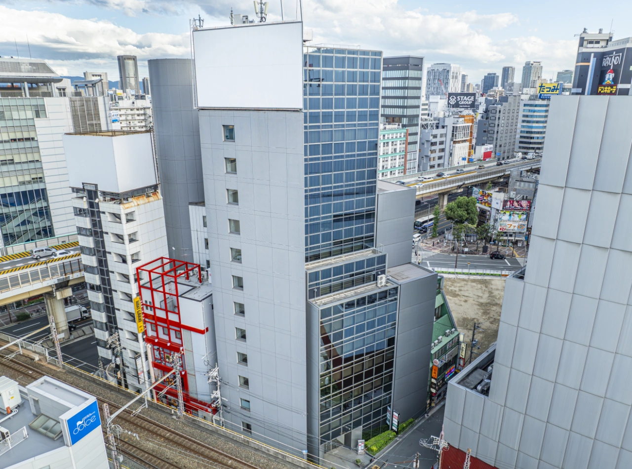 西日本有数の商業ゾーンの中、大観覧車がシンボルのHEPファイブ東隣に位置し、阪急、地下鉄、JR、新御堂筋にも素早くアクセスできる環境。ガラスを基調としたスタイリッシュな外観と、先進の機能性を備えたインテリジェントビルです。