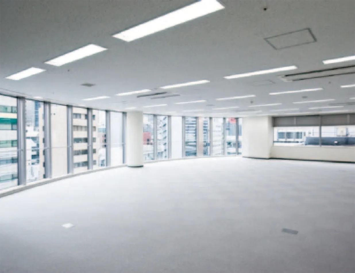 約530㎡の無柱空間が生み出す開放的なフロアは、最大4分割までのレイアウト変更が可能。フリーアクセスフロアや光回線にも対応しており、将来的なOA機器の増設にも柔軟に対応します。また、個別制御型の空調システムにより24時間いつでも快適な室内環境を実現。最新のカードキーシステムを採用し、24時間自由な入退室と高いセキュリティを両立しています。