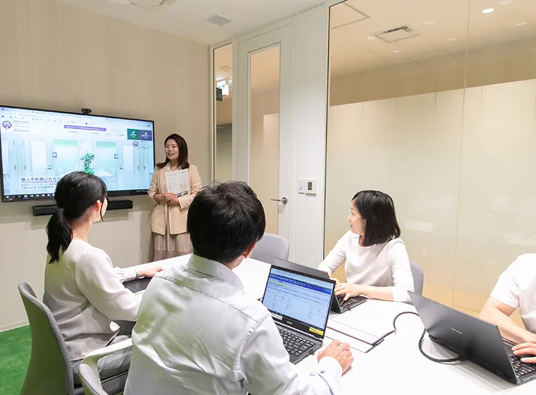 個室もご用意しており、来客対応やランチミーティングにも対応します。
