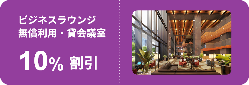 リージャスエクスプレスのビジネスラウンジをサテライトオフィスとして利用できる優待サービスなどを用意しています。